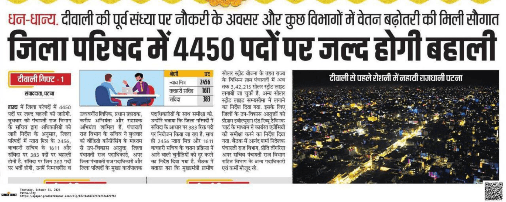Bihar Panchayati Raj Recruitment 2024 Overview :-