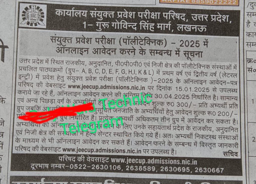 JEECUP Polytechnic Admission 2025 :-