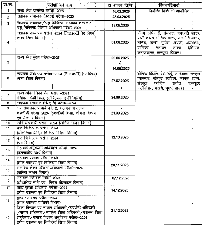 MPPSC Exam Calendar 2025 Exam Dates :-
