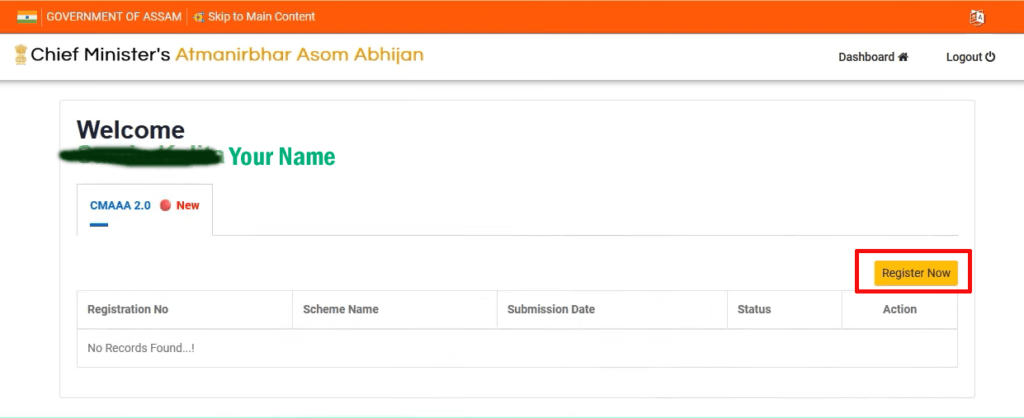 सबसे पहले आपको सीएम आत्मनिर्भर असम अभियान के आधिकारिक वेबसाइट पर जाना होगा।