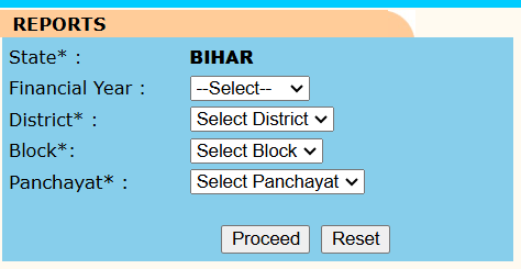 • नीचे अपना ब्लॉक और पंचायत सेलेक्ट करके प्रोसीड (Proceed) पर क्लिक कर दें।