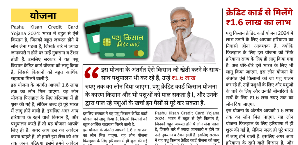 Pashu Kisan Credit Card Yojana 2024 Details :-