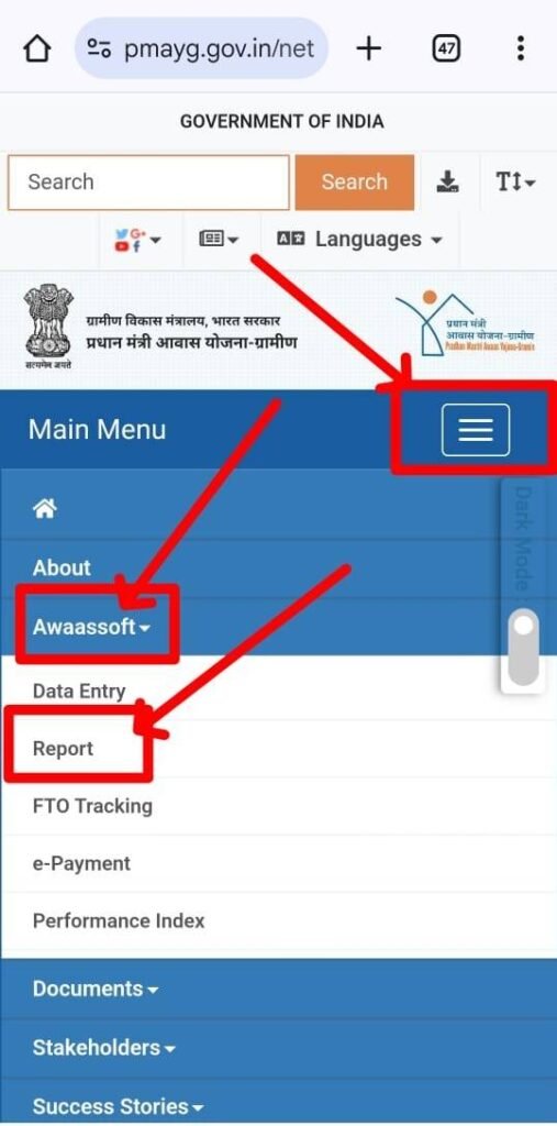 - होम पेज पर दिए गए Awaassoft वाले ऑप्शन पर जाने के बाद Report वाले विकल्प पर क्लिक कर देना होगा। अब आपके सामने कुछ इस प्रकार पेज खुलकर आ जाएगा।